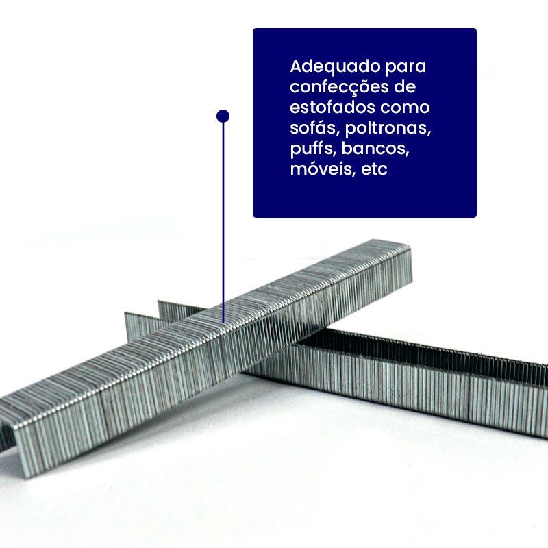 Forrar um estofado é um trabalho de muita prática, calma e técnica. Logo, é também muito importante que isto seja feito com os recursos certos. E um destes recursos é justamente o grampo: ele precisa ser duradouro, discreto, firme e resistente. Ou seja, se o seu objetivo é fazer a manutenção de artigos de estofaria, este é o grampo certo.