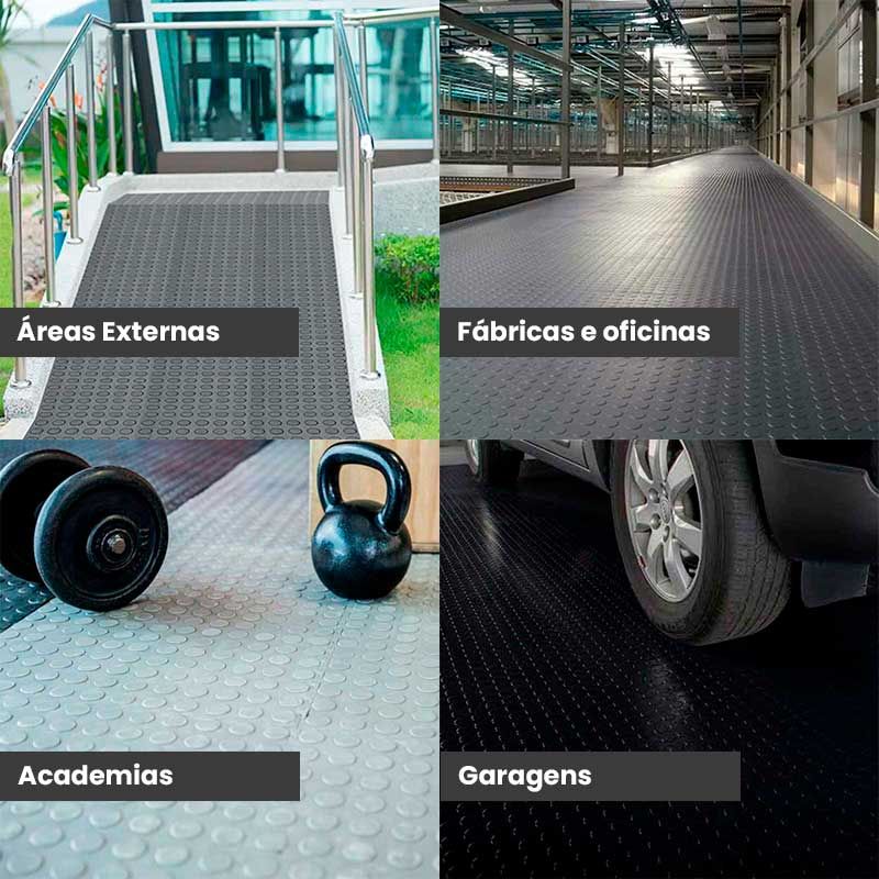 As recomendações de uso são direcionadas a estabelecimentos e ambientes com alto tráfego de pessoas. Este tipo de piso emborrachado moeda possui uma aplicação simples e fácil, além de possuir uma longa durabilidade.